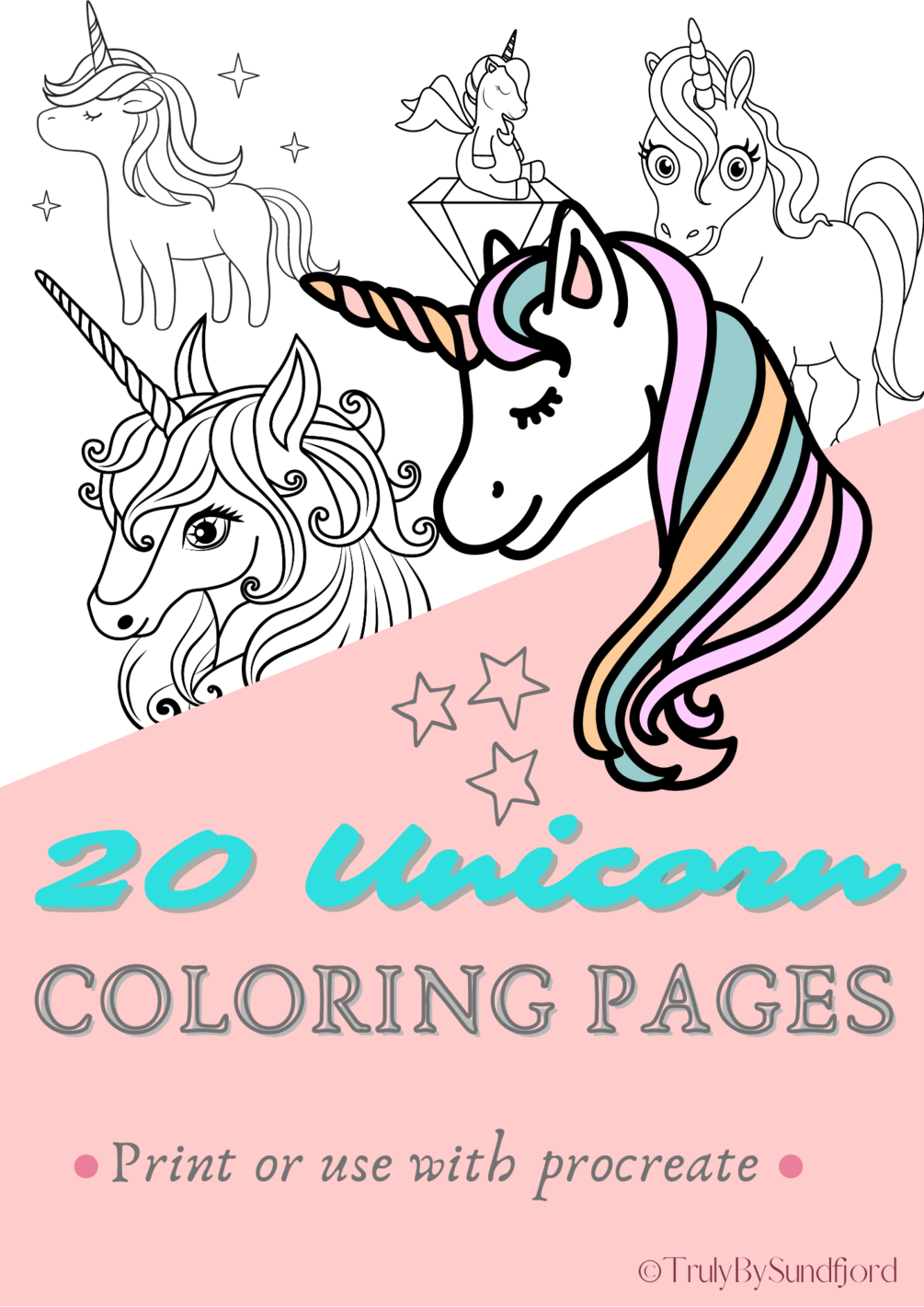 - 20 pages filled with beautiful unicorns ready to be colored